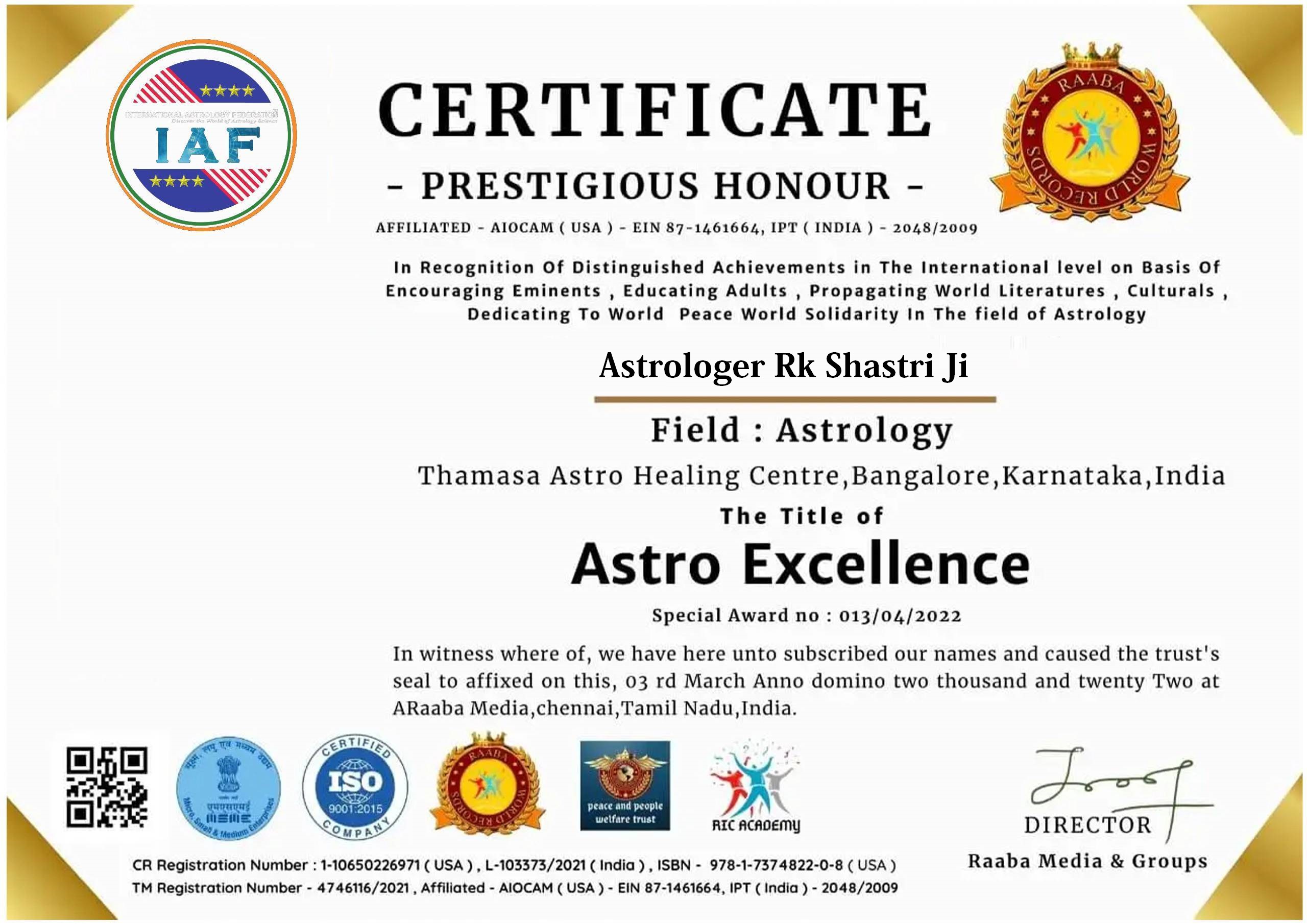 Expert Astrologer: Rk Shastri Ji is a highly skilled astrologer with solutions for any problem one may encounter in day-to-day life.